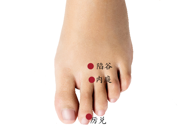 采用正坐、或者仰卧寸,足背第2、第3趾间,趾蹼缘后方赤白肉际处。