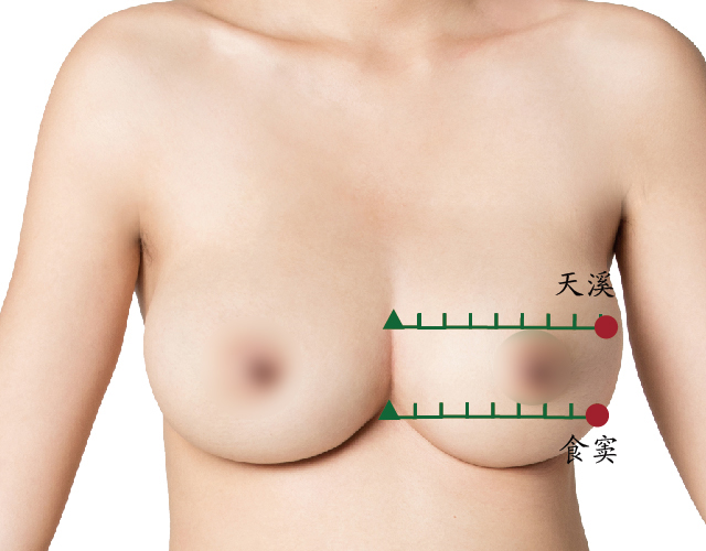 采用正坐、或者仰卧寸,在胸外侧部,当第5肋间隙,距前正中线6寸。