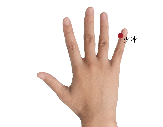 采用正坐、或者仰卧寸,在小指末节桡侧,距指甲角0.1寸。
