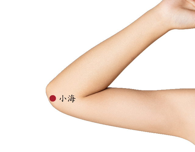 采用正坐、或者仰卧寸, 屈肘,当尺骨鹰嘴与肱骨内上髁之间凹陷处。