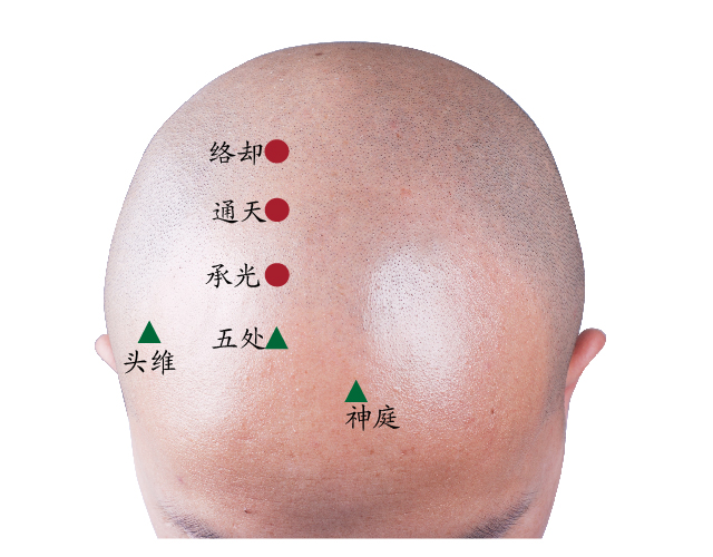 采用正坐、或者仰卧寸,前发际正中直上0.5寸,旁开1.5寸。