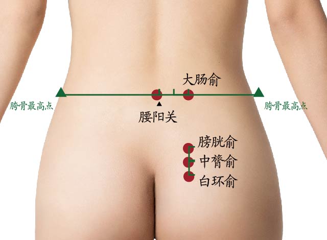 采用正坐,骶正中嵴(第2骶椎棘突下)旁开两横指,约平第2骶后孔。
