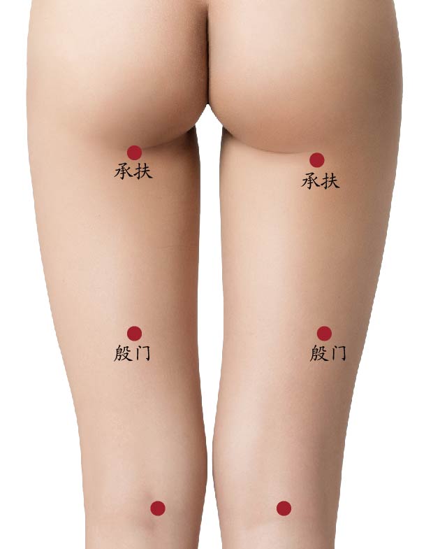 采用正坐,人体承扶穴位于大腿后面,臀下横纹的中点。