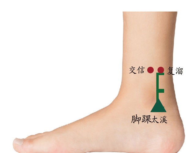 正坐垂足或仰卧位,在太溪上2寸,当跟腱之前缘处取穴,位于人体的小腿里侧,脚踝内侧中央上二指宽处,胫骨与跟腱间。