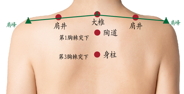 采用正坐,或者俯卧姿势,位于背部,第3胸椎棘突下凹陷中。