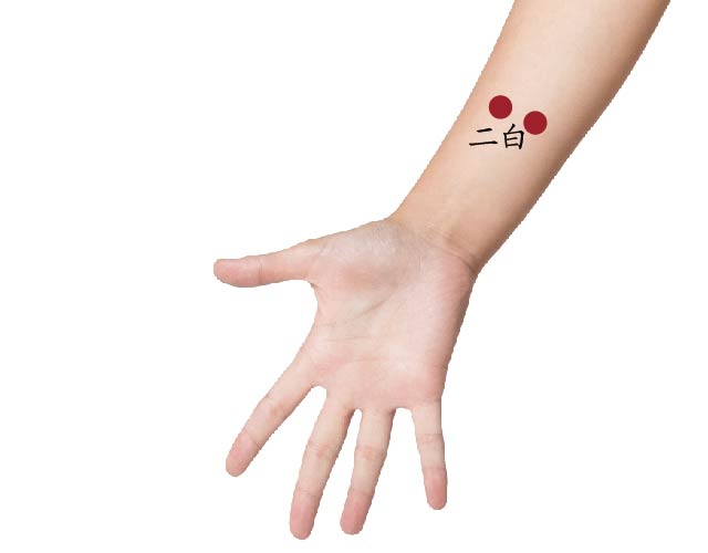 采用正坐,位于前臂前区,腕掌侧远端横纹上4寸,桡侧腕屈肌腱的两侧,一肢2穴,共4穴,伸臂仰掌取之。